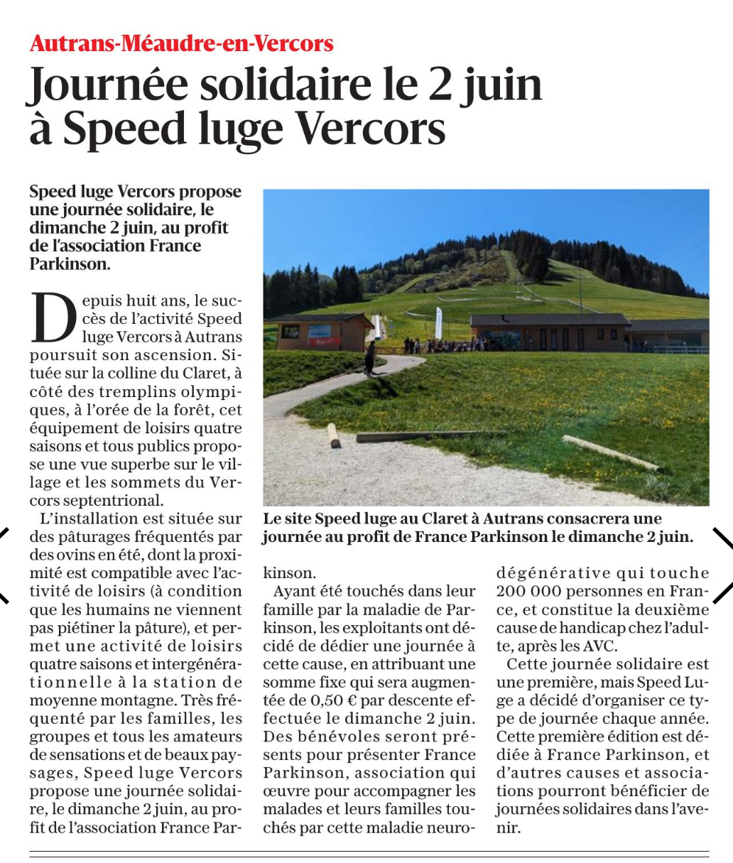 Alors on vous attend nombreux sur les luges le dimanche 2 juin pour cette première édition qui sera sous les couleurs de l’association France Parkinson !